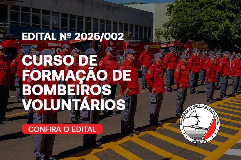 A Associação de Serviços Sociais Voluntários de Concórdia (ABVCon) divulgou o edital do Exame de Seleção do Curso de Formação de Bombeiros Voluntários (CFBVO), voltado à preparação de novos integrantes para atuar em ocorrências de incêndios, resgates, salvamentos, suporte básico de vida e ações preventivas e educativas no município.
