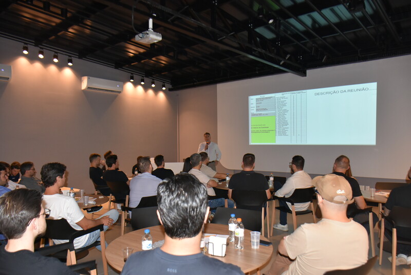 Antes da palestra, os participantes realizaram um tour pelas instalações da empresa anfitriã, conhecendo os diferentes setores e departamentos da Simão Imóveis. A visita incluiu a sala de imersão utilizada para apresentação de empreendimentos e a exposição do novo projeto imobiliário, o Residencial Auraà, concebido com um conceito que remete à alfaiataria imobiliária, uma espécie de alta costura aplicada à arquitetura.