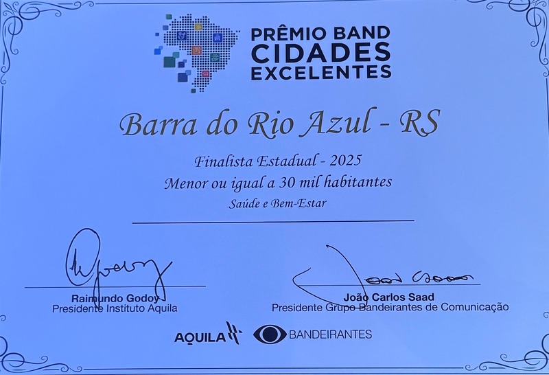 Barra do Rio Azul alcançou um notável 3º lugar no Prêmio Band Cidades Excelentes 2025, na categoria de municípios com menos de 30 mil habitantes, destacando-se no pilar Saúde e Bem-Estar. A premiação, que garante a excelência na gestão pública, é um reflexo do compromisso do município em melhorar a qualidade de vida de sua população por meio de serviços de saúde eficientes e bem estruturados.
