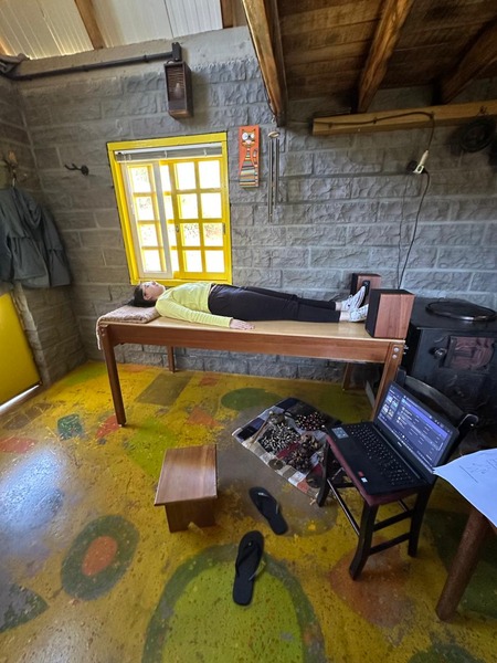 Coordenada pelo musicoterapeuta Joel Paulo Tomazelli, a ação integrou som e vibrações como parte de um projeto-piloto voltado ao enfrentamento de traumas, ansiedade e estresse. A Mesa Lira é um instrumento terapêutico utilizado na musicoterapia vibro acústica, no qual a pessoa deita-se sobre a estrutura e recebe vibrações sonoras produzidas pelas cordas, que se propagam pelo corpo, promovendo estímulos físicos e sensoriais semelhantes a uma massagem sonora.