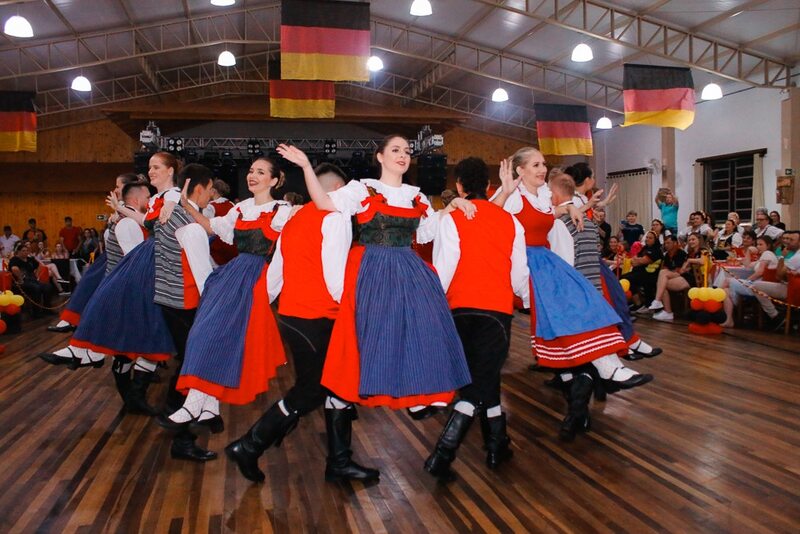 Já no sábado, dia 8, o grande evento no Salão Paroquial da Paróquia São Tiago. A partir das 19h haverá recepção aos grupos de dança e público em geral. Logo após, 19h30, jantar típico da culinária alemã.