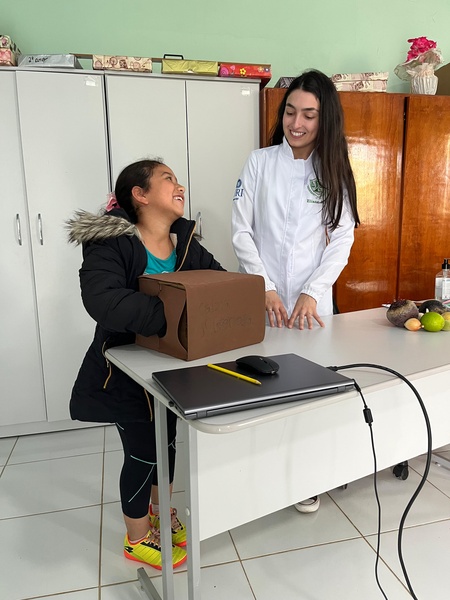 A segunda ação, realizada no dia 15 de setembro, aconteceu na Escola Municipal Samburá, em Entre Rios do Sul. A aluna Eliane Maia conduziu atividades lúdicas com crianças de 6 a 8 anos, com o objetivo de promover a educação alimentar e nutricional, incentivando a adoção de hábitos saudáveis desde a infância.