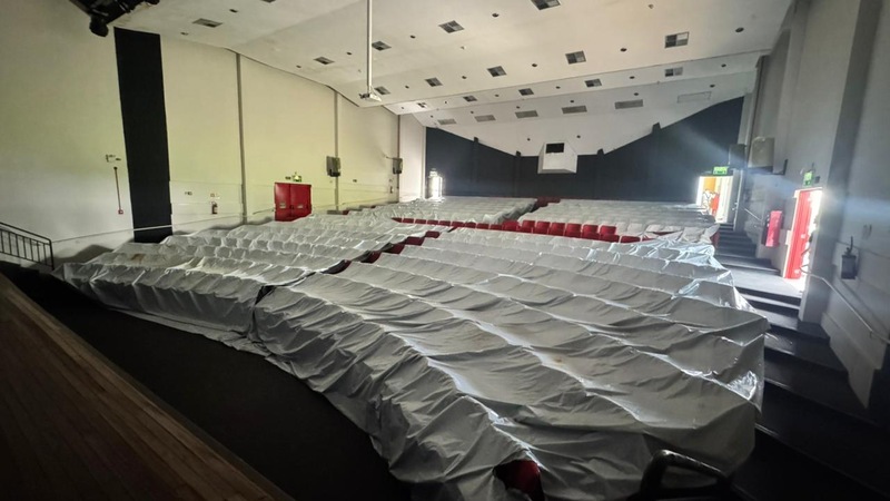 Na sequência, será feita a troca do forro de gesso, comprometido por infiltrações, e, na etapa final, a substituição do carpete e a higienização das cadeiras afetadas pela entrada de água durante o temporal.