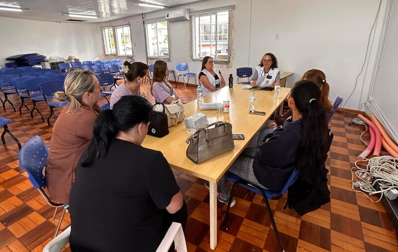 Na área da saúde, a equipe esteve no Centro de Referência em Saúde da Mulher, onde recebeu orientações da coordenadora do Materno Infantil, enfermeira Isabella Scarton. Durante o encontro, foram abordados temas como cuidados com os bebês, saúde da mulher, amamentação e métodos contraceptivos — conteúdos fundamentais para o trabalho desenvolvido junto às gestantes e famílias.