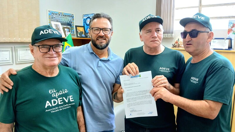 Na manhã desta segunda-feira (23), o vereador Claudemir de Araújo (Progressistas) recebeu, em seu gabinete, representantes da ADEVE – Associação de Deficientes Visuais de Erechim. Na oportunidade, o parlamentar comunicou oficialmente a destinação de uma emenda impositiva de sua autoria, no valor de R$ 100.000,00, recurso que será utilizado na construção da sede própria da entidade.