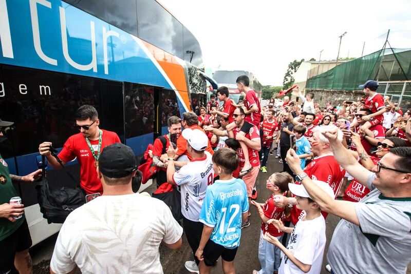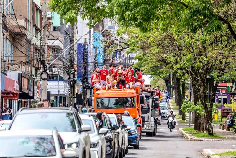 A chegada foi digna de campeão: centenas de torcedores aguardaram o time no acesso ao Ginásio do Caldeirão do Galo e seguiram em uma grande carreata do título, que percorreu as principais avenidas da cidade — Maurício Cardoso e Sete de Setembro — em clima de muita comemoração.
