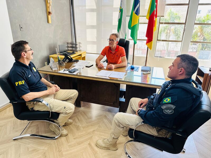 Na tarde desta quarta-feira (4), o presidente da Câmara Municipal de Erechim, vereador Carlinhos Magrão (PSDB), recebeu em seu gabinete a visita de representantes da Polícia Rodoviária Federal (PRF). Estiveram presentes o chefe do Posto da PRF em Erechim, Regivaldo Tonon, e o chefe da 8ª Delegacia da PRF, com sede em Sarandi, Fernando Morbini.