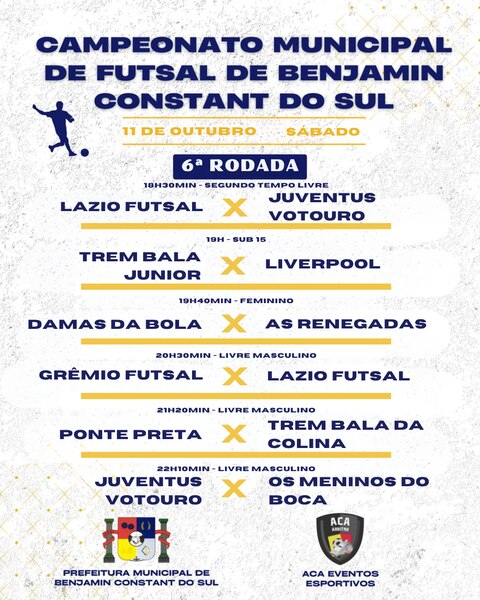 O Campeonato Municipal de Futsal de Benjamin Constant do Sul segue empolgando torcedores e atletas, com partidas cheias de emoção no Ginásio Municipal. A rodada realizada no sábado, dia 4 de outubro, foi marcada por jogos intensos, muitos gols e atuações de destaque.