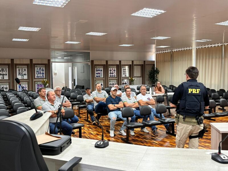 Chefe da PRF Erechim palestra para motoristas do transporte escolar de Severiano de Almeida