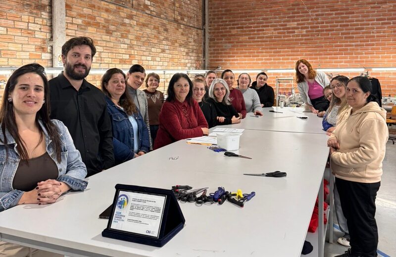 As aulas estão sendo realizadas na sede da Cooperativa do Vestuário do Alto Uruguai, com atividades práticas e teóricas focadas em introdução à costura industrial, operação de máquinas e conhecimentos básicos sobre o setor do vestuário.