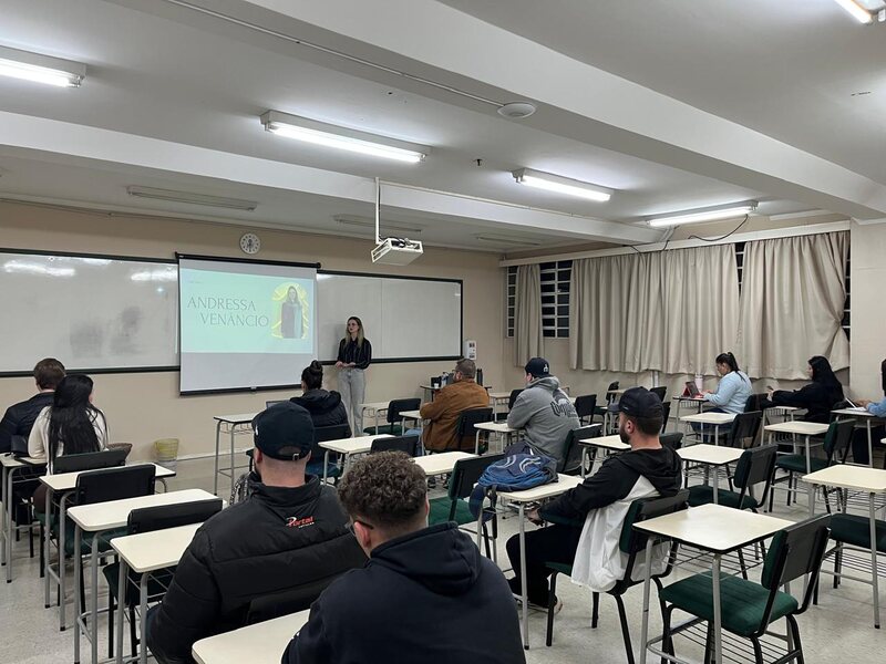 Andressa Venâncio explanou sobre sua trajetória profissional, em dois momentos distintos, realizados nos dias 30 de setembro, com a turma do noturno, e na quinta-feira, 16 de outubro, com a turma do diurno.