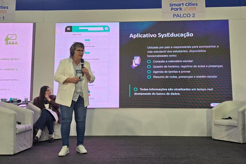 Na quarta-feira (29), a secretária de Educação, Verenice Lipsch, e o diretor de Informática Educacional, Alaercio Santos, apresentaram o painel “Educação Conectada: Caminhos para a Transformação Digital”, destacando as ferramentas tecnológicas que estão transformando o processo de ensino e aprendizagem nas escolas municipais.
