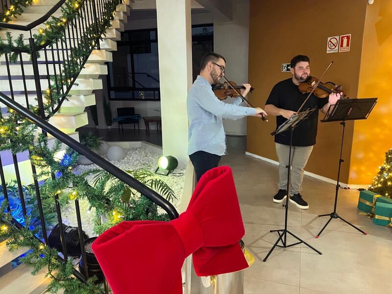 Logo na recepção, realizada na noite de terça-feira (4), no Centro Cultural 25 de Julho, o público foi acolhido pelo Coro Madrigal da Orquestra de Concertos de Erechim (OCE) e pelos violinistas Tiago Woicolesko e Vinicius Woicolesko.