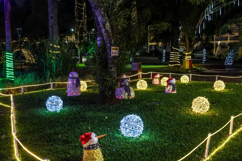 Árvores, postes e monumentos foram adornados com milhares de luzes coloridas, criando um ambiente mágico que convida famílias e turistas a vivenciarem momentos únicos de celebração.