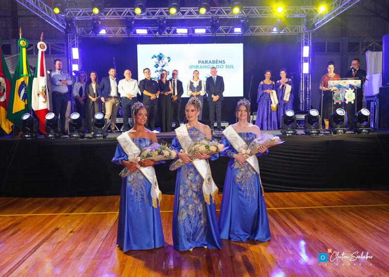 Outro ponto alto da noite foi a coroação das novas soberanas, que assumem a responsabilidade de representar o município até 2028. A cerimônia emocionou o público ao celebrar a nova corte e também reconhecer o trabalho das representantes anteriores, reforçando o orgulho e a identidade local.