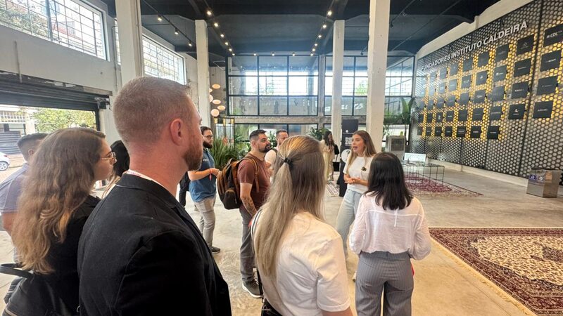 Os participantes da Missão Empresarial de Erechim realizaram, nesta quinta-feira (26), uma visita técnica a um dos principais ambientes de inovação de Porto Alegre: o Instituto Caldeira. A atividade integrou a programação paralela à participação do grupo no South Summit Brazil, evento internacional voltado ao empreendedorismo, tecnologia e inovação.