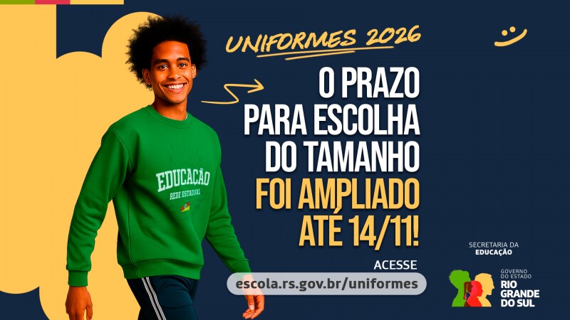 Os estudantes da Rede Estadual de Ensino ganharam mais tempo para realizar o pedido dos uniformes escolares para o ano letivo de 2026: o prazo de escolha dos tamanhos segue aberto até 14 de novembro. A solicitação deve ser feita pela plataforma oficial da Secretaria da Educação (Seduc) destinada às inscrições e confirmações de tamanho das peças.