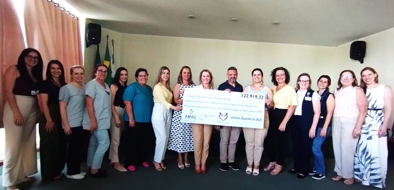 O cheque simbólico no valor de R$ 122.919,32 foi recebido pelo diretor administrativo do hospital, Marcio Pires, em ato que reuniu primeiras-damas e colaboradores da instituição.