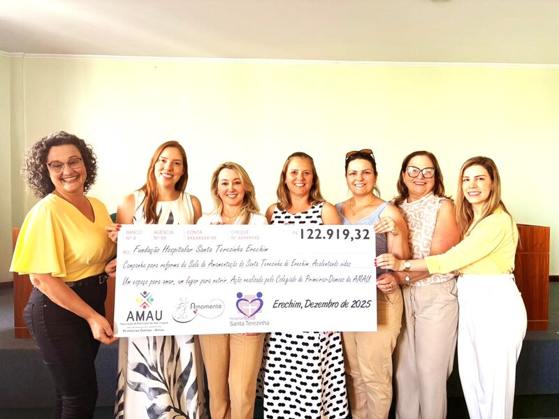 O colegiado das primeiras-damas da AMAU, comandado pela presidente Silvana Mafissoni, concluiu nesta sexta-feira, 5, a entrega dos valores arrecadados pelo Pedágio Solidário, campanha iniciada em setembro e que se estendeu por quase 90 dias nos municípios do Alto Uruguai. O recurso será destinado à reforma da sala de amamentação da Fundação Hospitalar Santa Terezinha em Erechim.