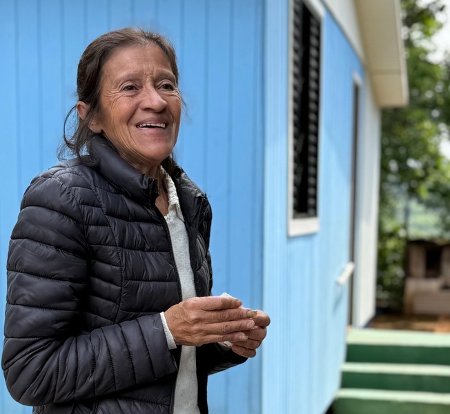 Emocionada, dona Noeli expressou sua gratidão ao ver o novo lar:
