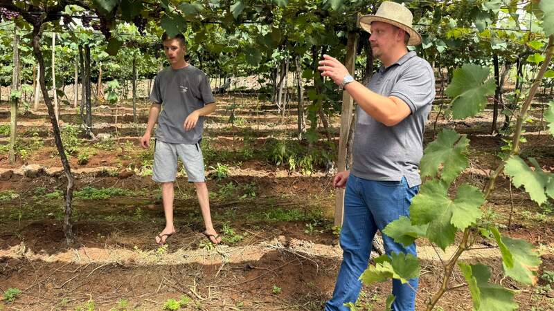 Nesta quinta-feira (15), o prefeito Paulo Polis e o secretário de Agricultura, William Racoski, visitaram a propriedade do jovem produtor Jonatan Bandiera, beneficiado com R$ 5 mil do Programa Pró-Jovem Rural. O recurso está sendo utilizado para a compra de mudas e a instalação de um sistema de irrigação em um parreiral de uva, contribuindo para a qualificação da produção e maior eficiência no manejo da lavoura.