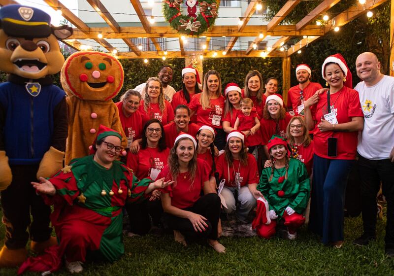 Em outro espaço do quintal, famílias registravam o momento em fotos feitas pela fotógrafa Ana Martinello, que captou abraços, sorrisos e gestos de carinho. Para uma das mães presentes, aquela foi a primeira foto de Natal da família em muitos anos.
