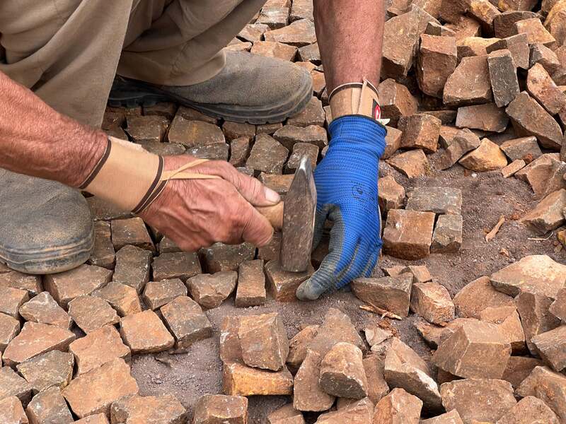 Restauro das pedras portuguesas é realizado manualmente, peça por peça, preservando a tradição e qualificando o espaço urbano.