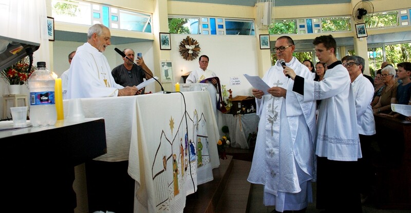 Padre Gladir Pedro Giacomel toma posse durante celebração que reuniu fiéis e peregrinos de diferentes regiões.