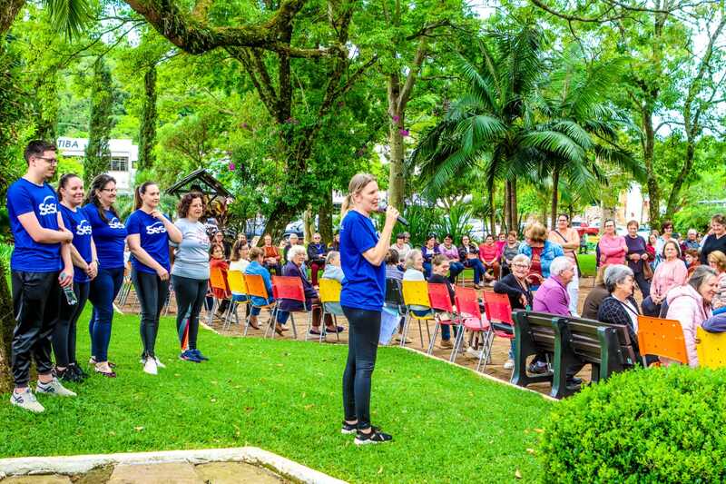 Evento realizado na Praça Central Jacob Granzortto, presidido pelo Prefeito Golson Carbonera e pela secretária de Ação Social Antonieta Cristina Machado, reuniu centenas de idosos e reforçou o compromisso do município com a saúde física e mental na Terceira Idade.