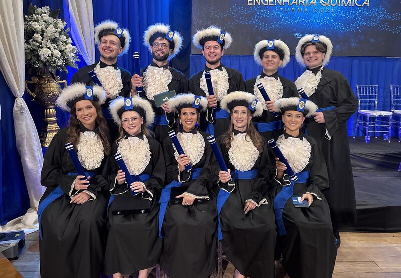 Já os novos Engenheiros Químicos, que tiveram como paraninfa a professora Jamile Zeni, são: Eduarda Campeol, Fabiana de Oliveira Pereira, Guilherme Antônio Mariga, Luiz Antônio Teixeira Pedott e Marcos Luís Morgan.